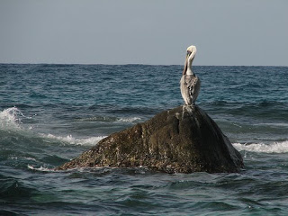 El pelícano, herido, se alejó del mar