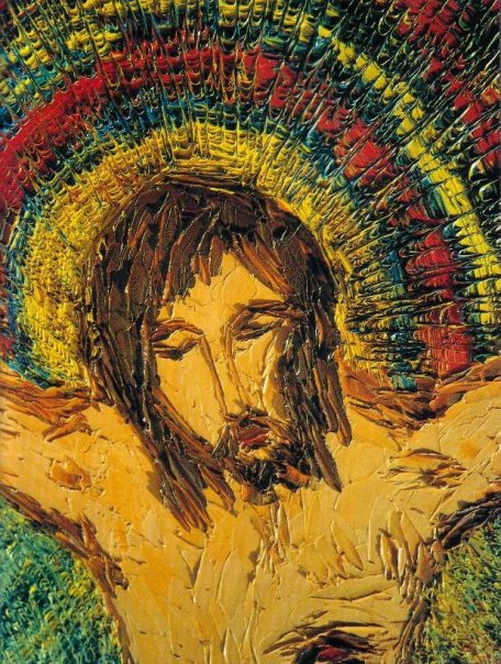 Me refiero a Antoine Knibily: Artista y sacerdote SSCC que recorre cárceles, basurales y casas de menores aquí en Chile. Cura de marginados entre los marginados, de capillas de cartón y de numerosos éxtasis espirituales llenos de Amor, como lo relata en sus anécdotas y como también lo podemos ver en los colores que usa. La forma de pintar de Knibily es tan extrema en cuanto a incorporación de pasta, movimiento y texturas que su pura técnica lo haría sobresalir dentro de la historia del arte universal; claro… si lo descubrieran y apreciaran. Por mientras: vive humilde y solo en la playa.